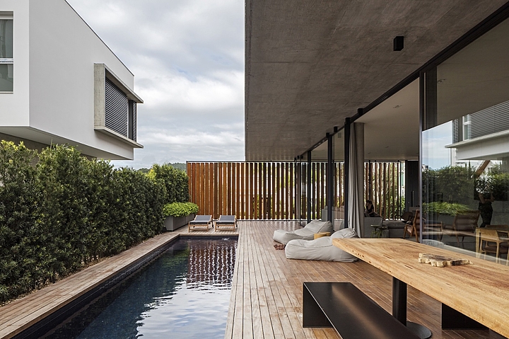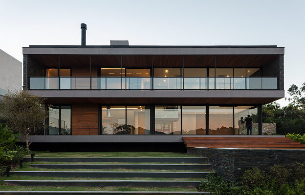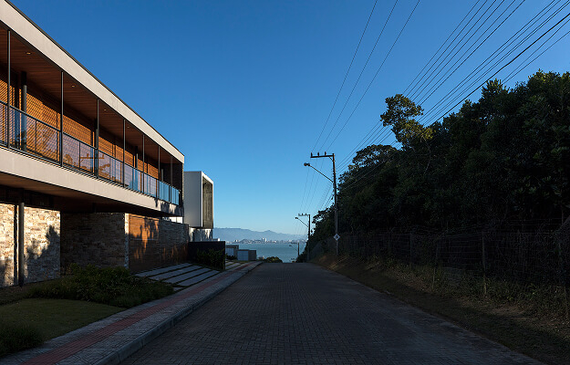 A Casa Bravos, um projeto de 2013 construído entre 2013 e 2015, está localizada no condomínio Porto Riviera, na Praia Brava de Itajaí/SC. Com uma área de 937 m², a casa foi projetada para aproveitar ao máximo a vista para o Leste, onde o oceano e a Praia Brava se destacam. A organização interna do projeto segue uma lógica clara e funcional: